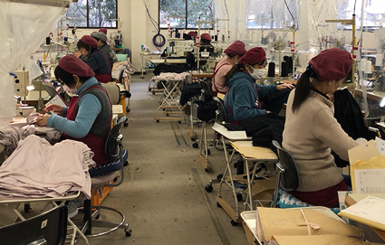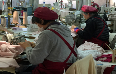長崎県佐世保市にある自社2工場において裁断・縫製・検品・検針と一貫生産のメリットを最大限に活かし、